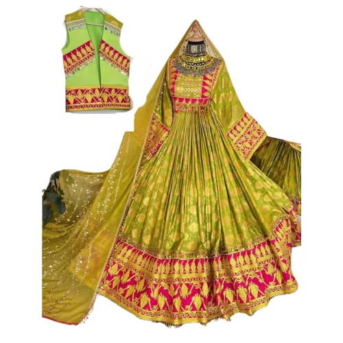 Eşleşen erkekler yelek ve Shalwar Kameez elbise seti ile kadınlar için geleneksel kabile Afghani düğün elbisesi