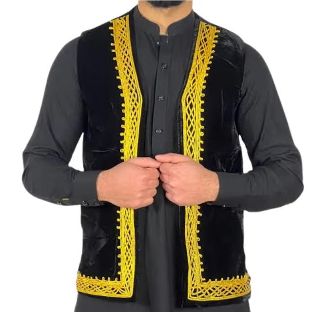 Şık erkek püskül dantel nakış v yaka yelekler gents ani düğün geleneksel gents için Kuchi yelek giyer